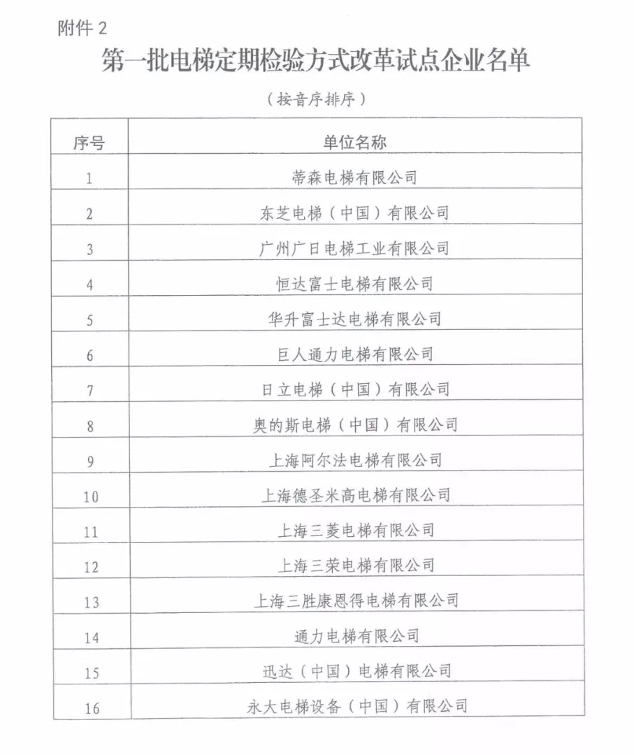 为了减少电梯事故的发生,增加电梯质量水准,依据上海市电梯使用情况,根据《市场监管总局关于同意在上海市开展电梯定期检验方式改革试点的批复》(国市监特函〔201896号)要求,特决定自2018年9月2020年9月,在上海市,选择部分电梯商,开展电梯定期检验方式改革试点